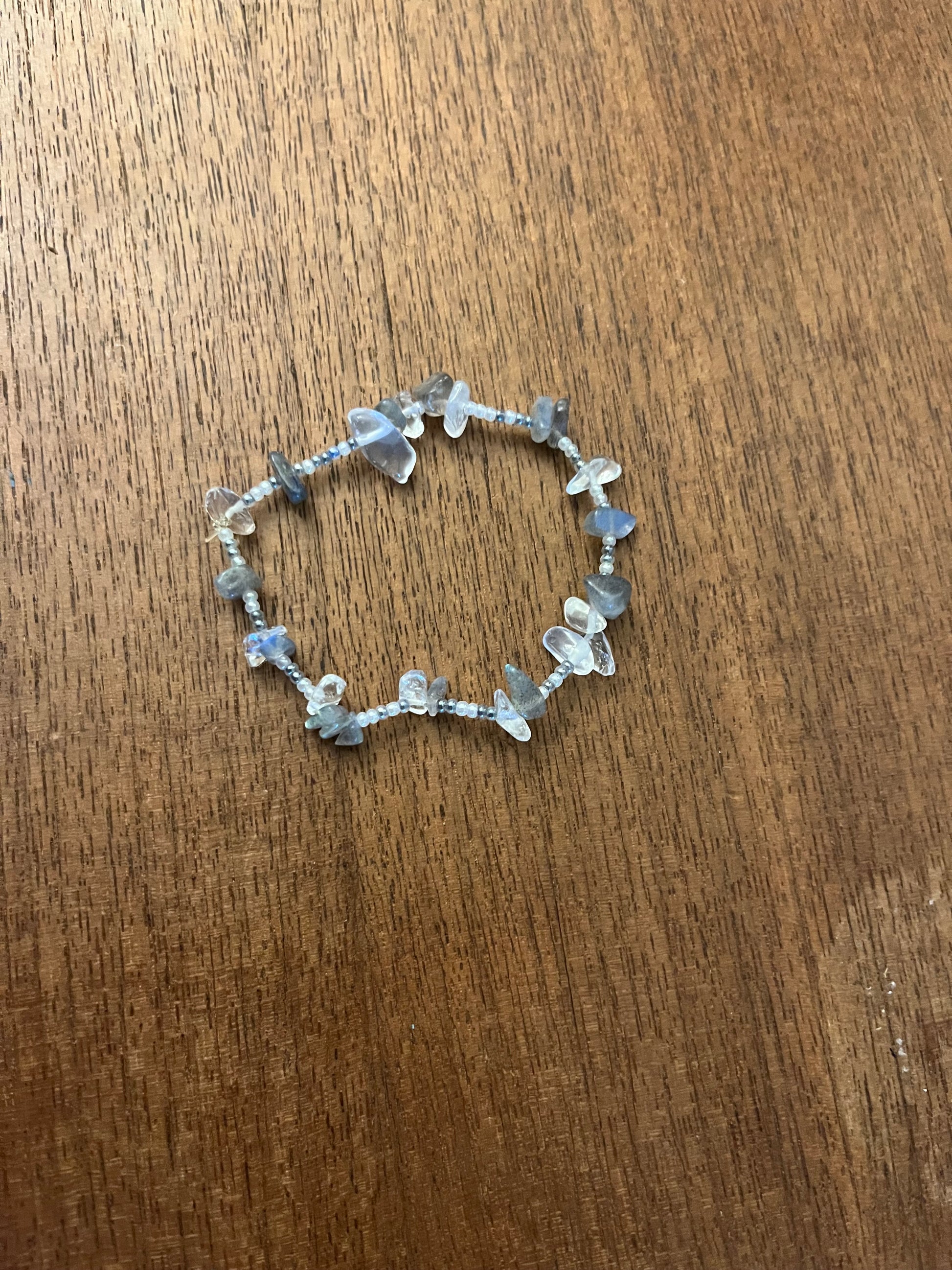 Hand made bracelet. Made with moon stone, white crystal, and accent beads